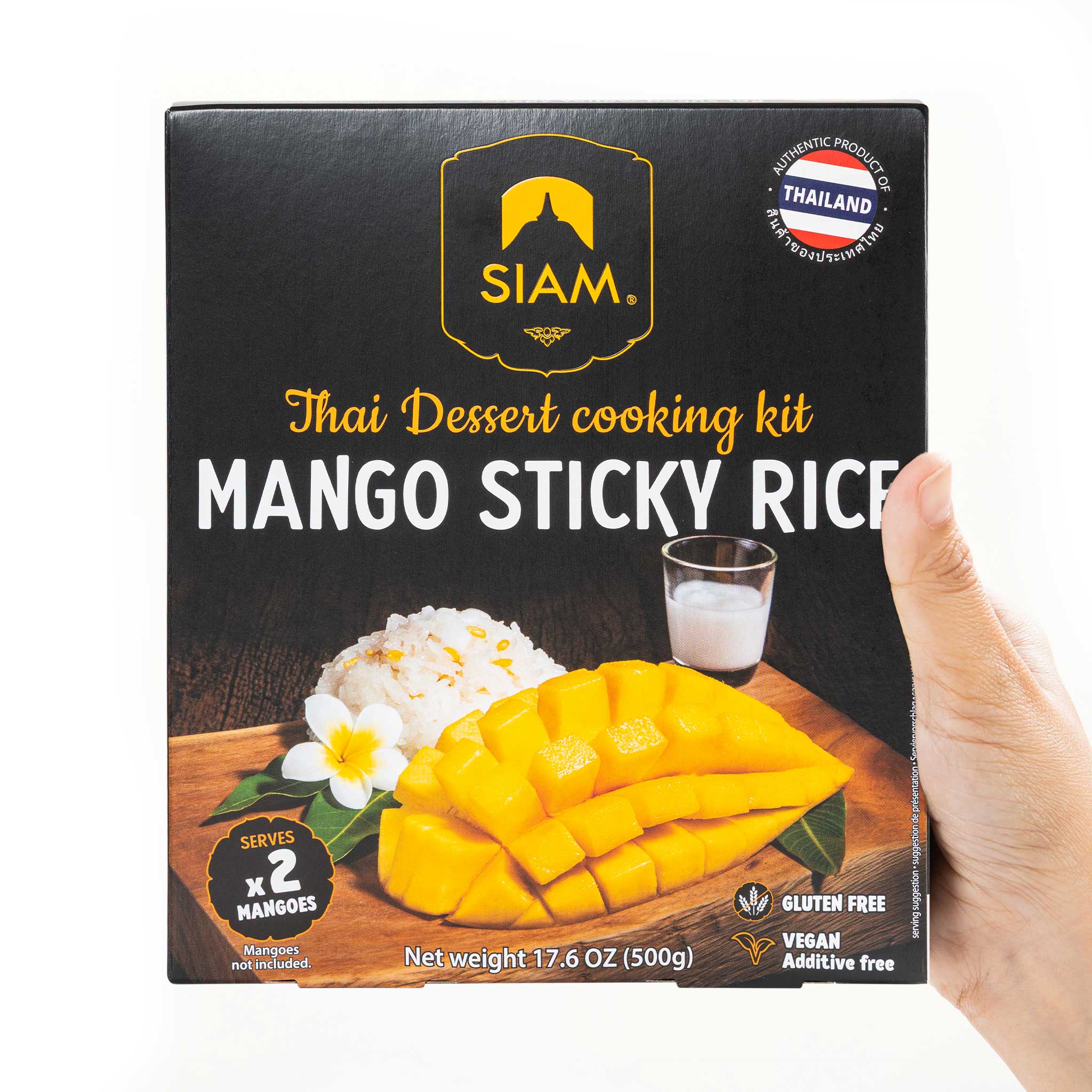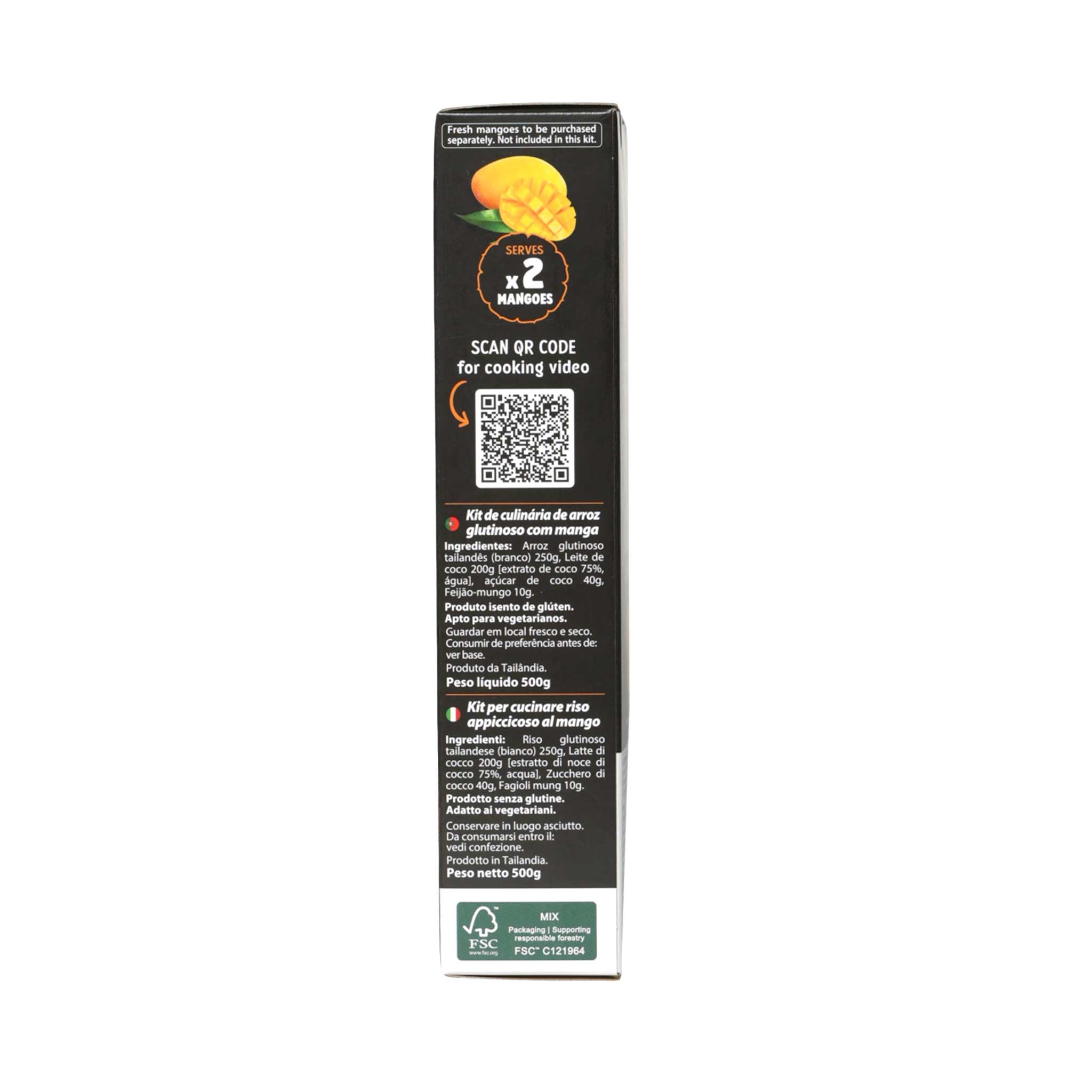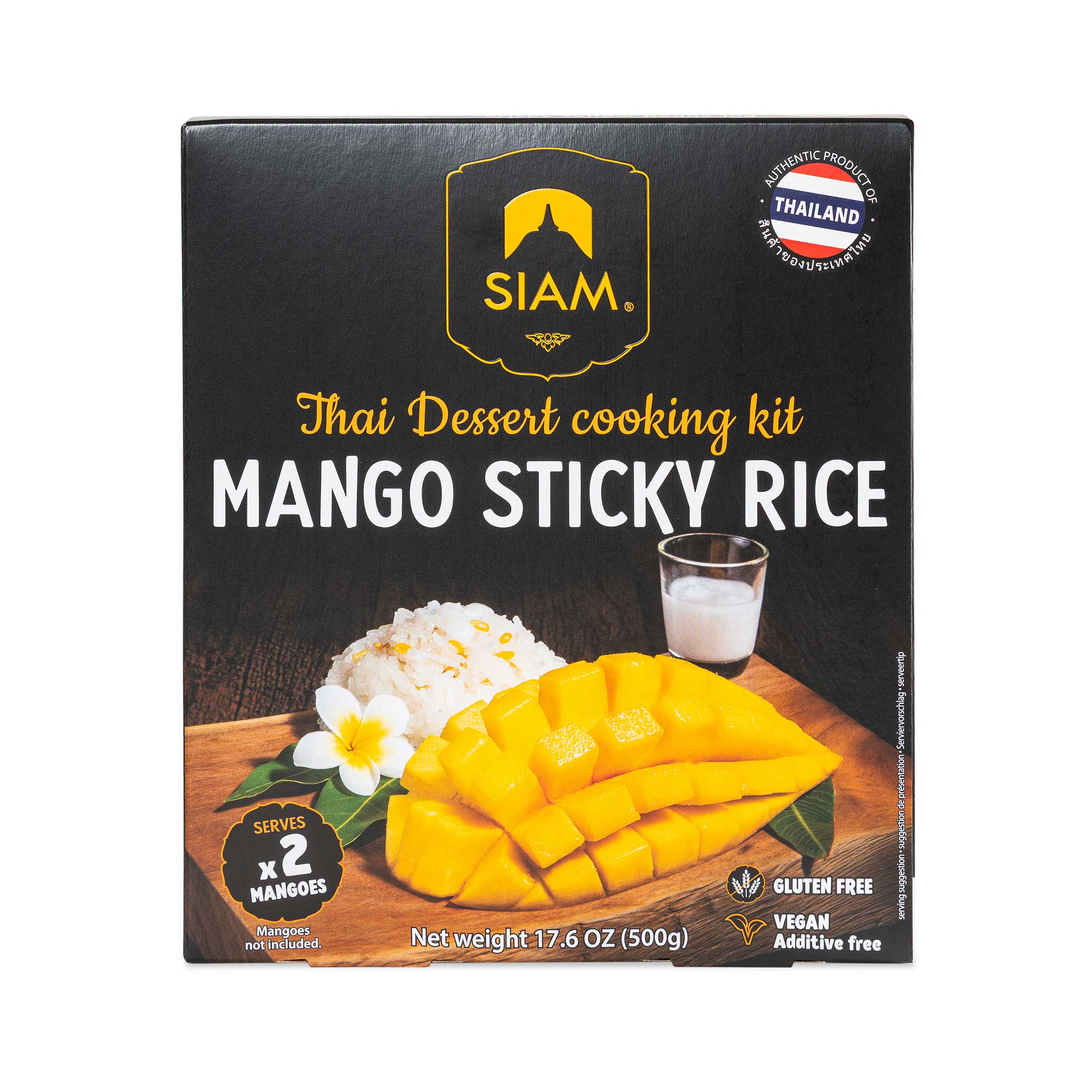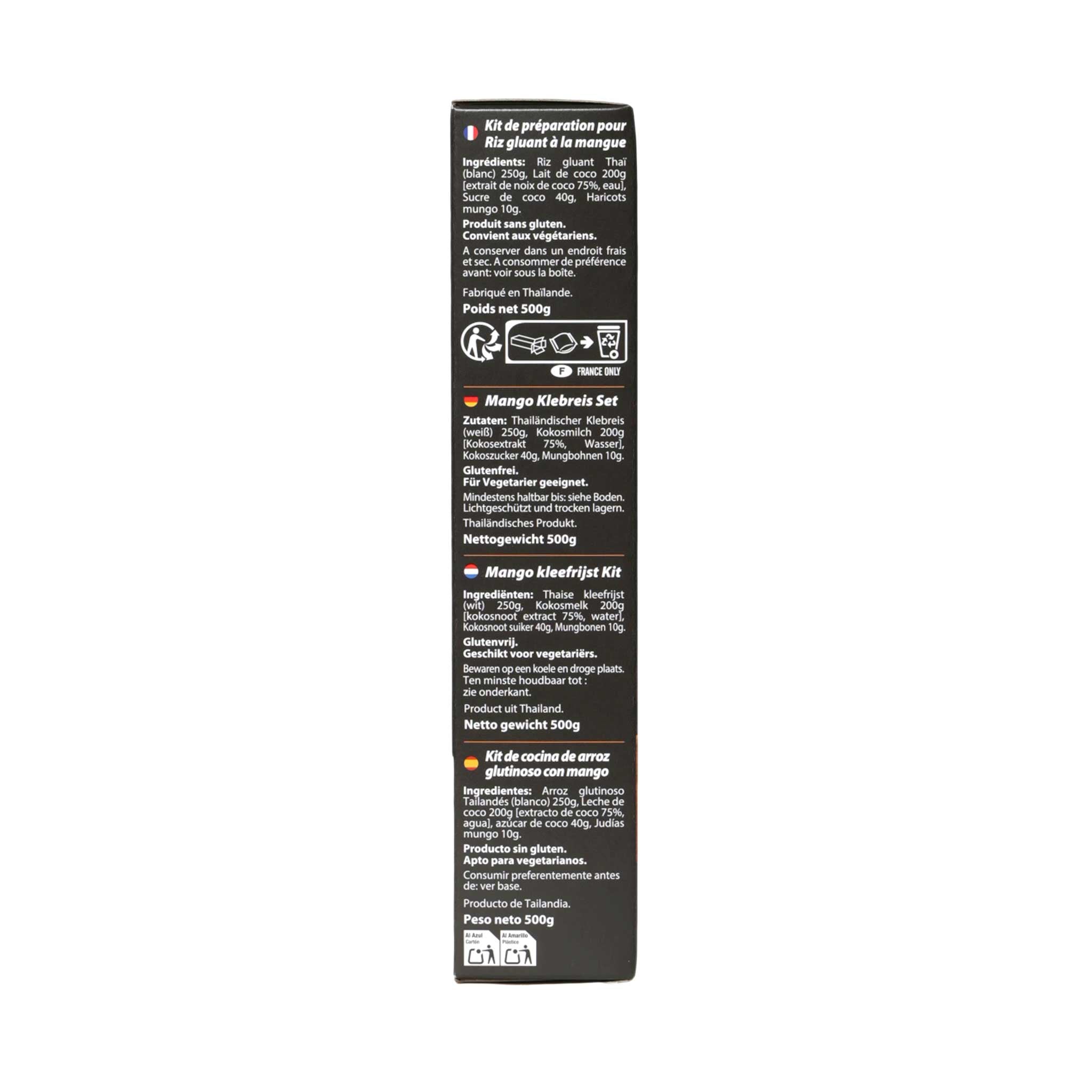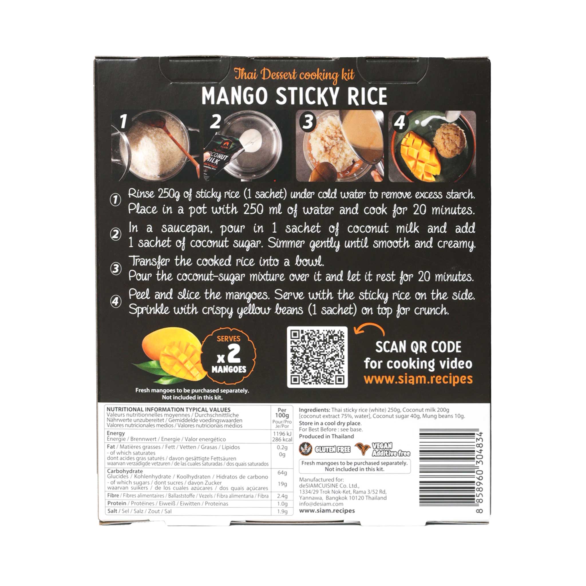 Ingredients: Thai Sticky Rice (white) 250g, Coconut Milk 200g [Coconut extract (Coconut, Water) 75.00%, Water], Coconut Sugar 40g, Mung beans 10g.